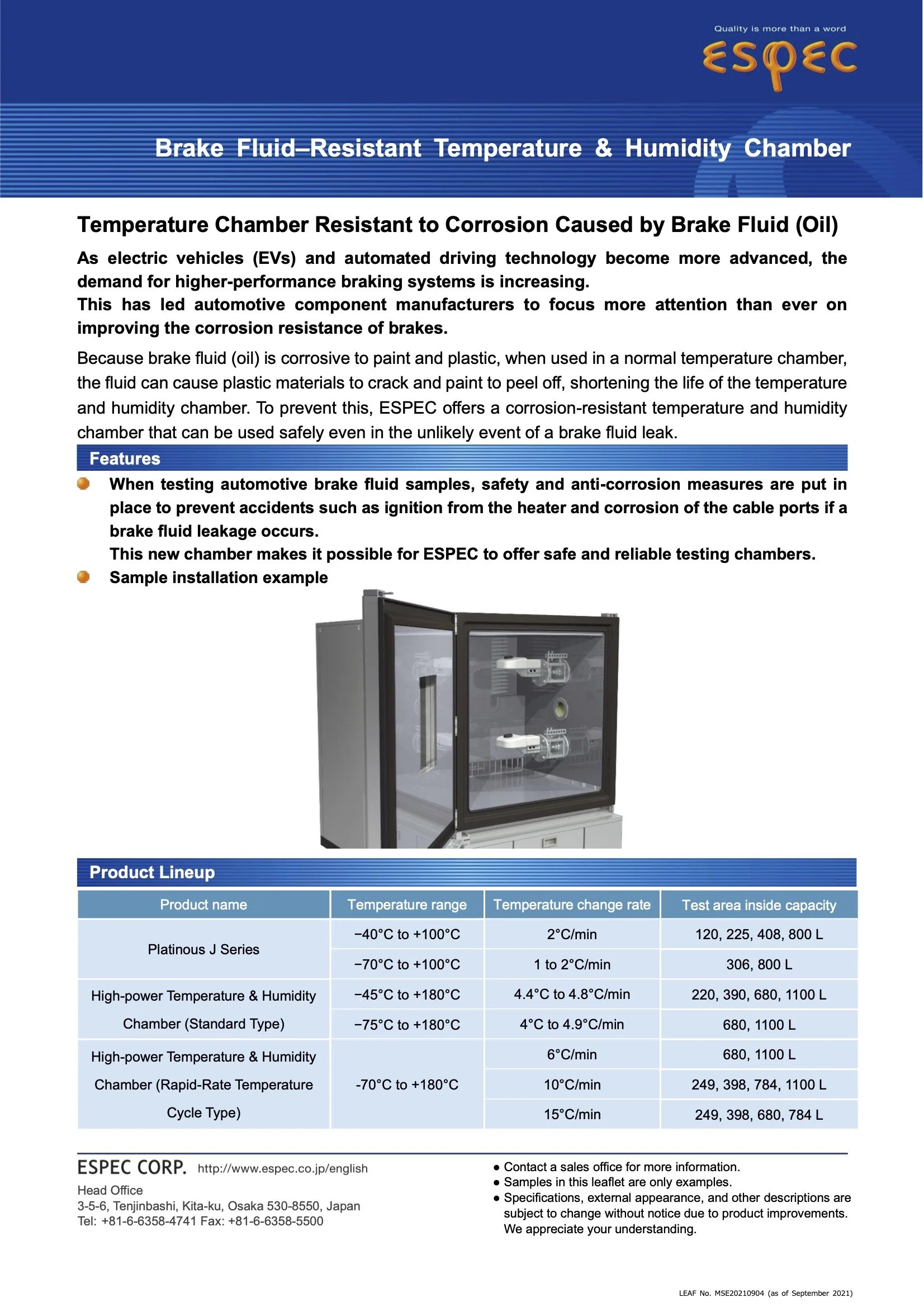 From LV-124 K-14 Condensation tests to brake-oil resistance chambers Espec has the experience to design the chamber you need.